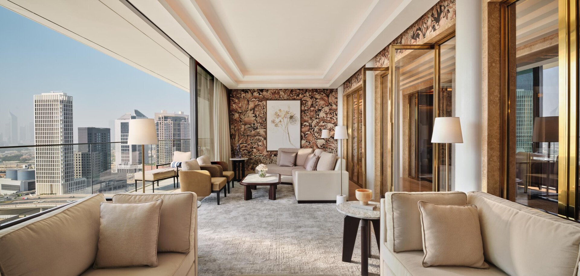 This distinguished presidential suite covers a huge floorspace of 333m²/3,585ft² (including the balcony) and runs the length of the elevation overlooking the Burj Khalifa. You’ll enjoy a spacious balcony, dining room, pantry and second sitting room for entertaining.