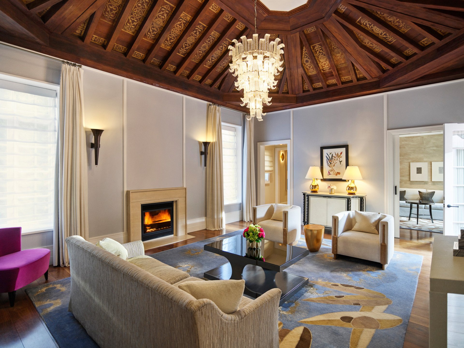 The iconic Grand Suite truly deserves its name. Experience a unique sense of style, full of streamlined glamour, including sumptuously dressed windows in which to lounge around dreamily, like a movie star from Hollywood’s Golden Age.
