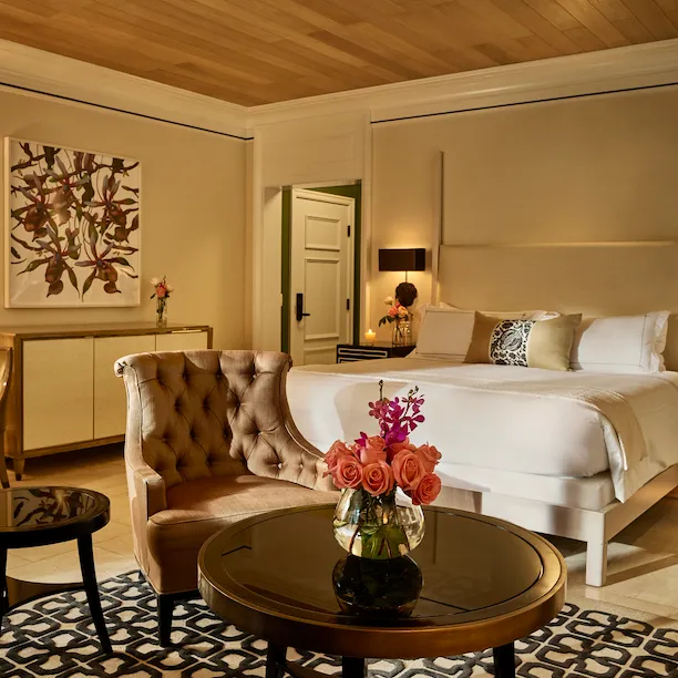 A spacious suite full of natural light and serene charm, accompanied by a refined style that epitomises the classic glamour of Hollywood past and present.