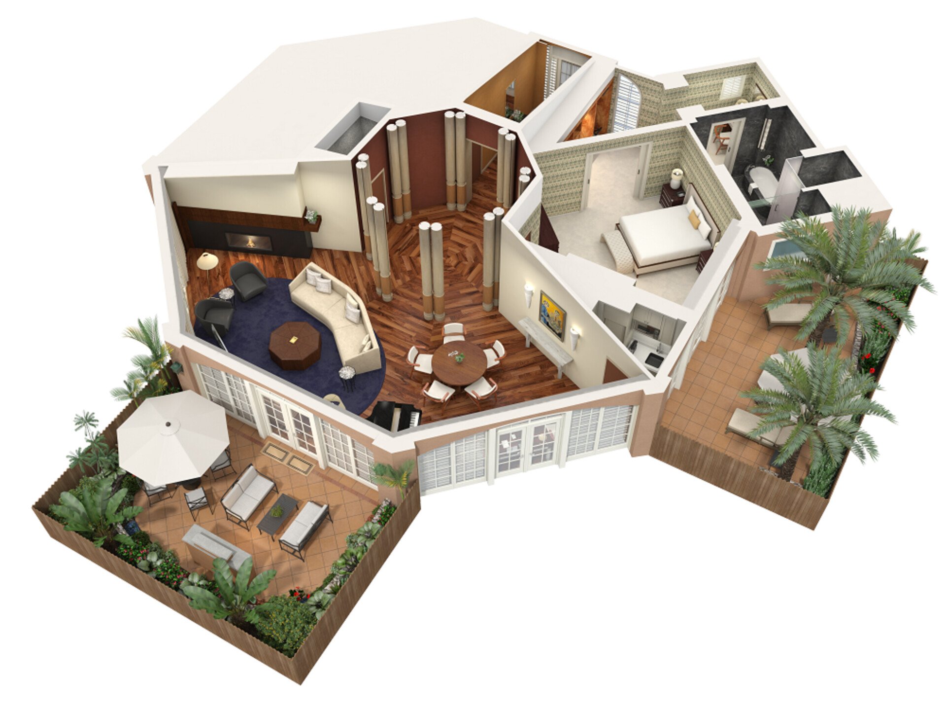 The iconic Palm Springs aesthetic, strong, fresh design and a wonderful octagonal ceiling. A mid-century playbook of style with custom-made furniture, an incredible terrace fireplace and, of course, that grand piano.