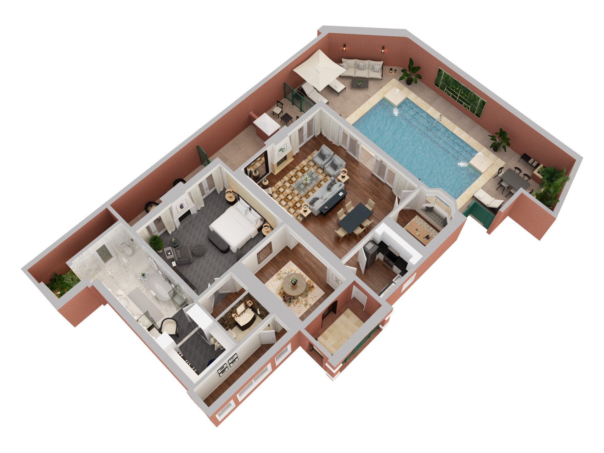 A cleverly modern interpretation of traditional design makes this space one of utter delight. The expansive outdoor patio features a private infinity pool, a fireplace and outdoor shower. We recommend doing very little but enjoying it all.
