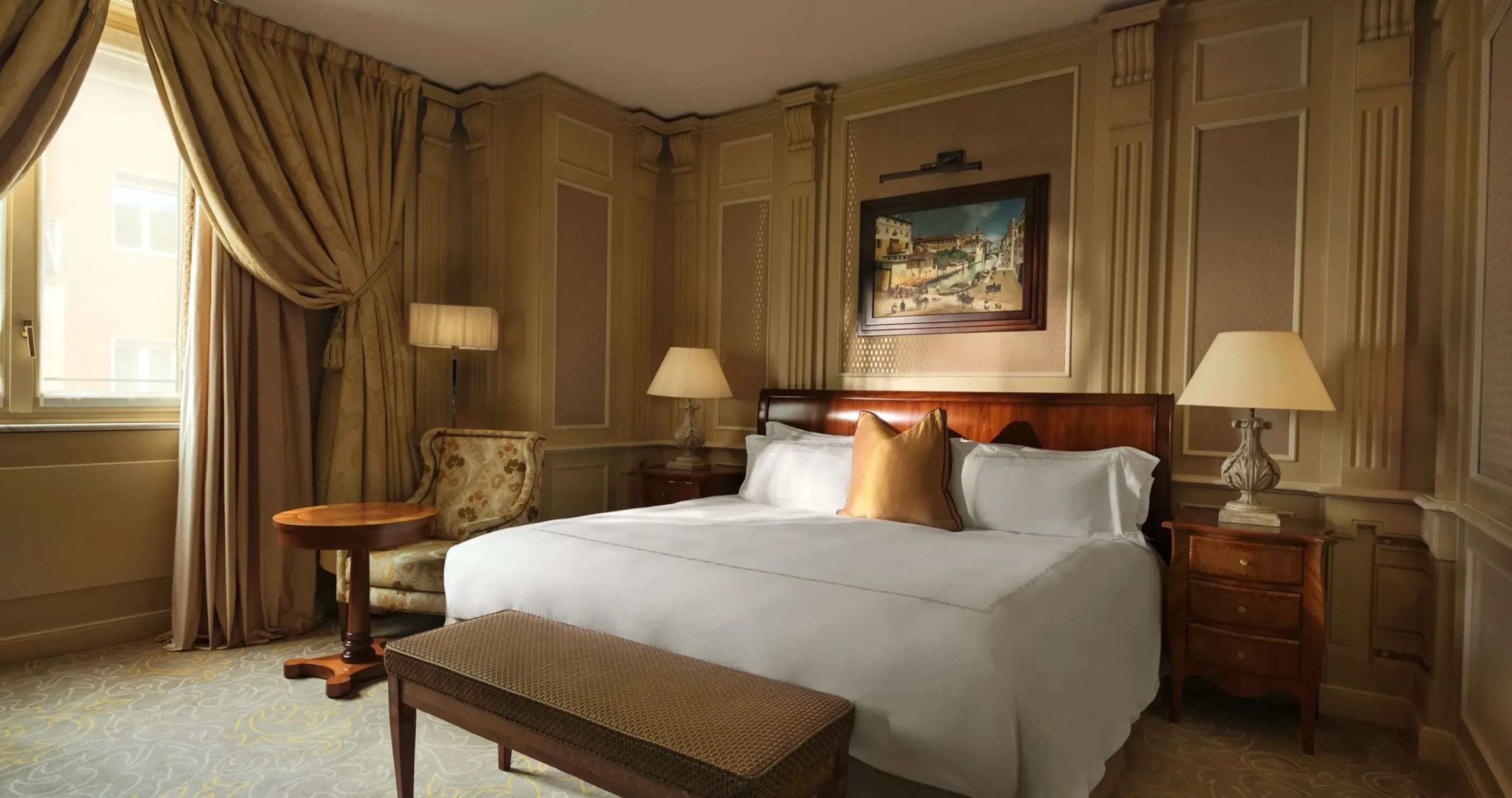 A beautiful blend of classic Italian inspiration meets contemporary style. Overlooking either a quiet street or courtyard view, each stylish room is appointed with elegant wooden furniture and fine fabrics. In the alluring bathroom, discover a delightful shimmering mosaic.