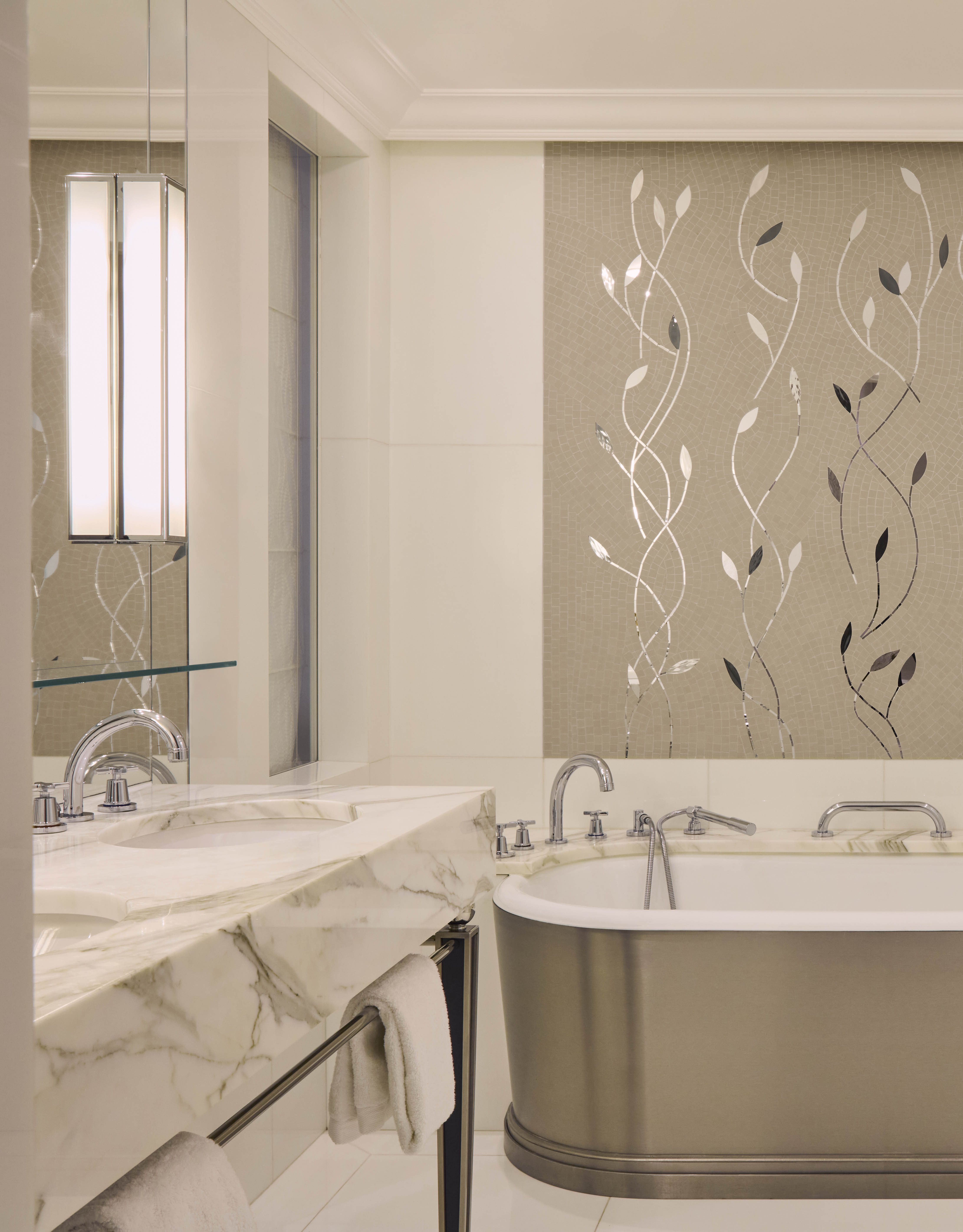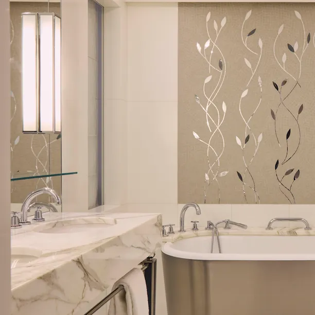 The suite experience extends to your bathroom, where cool Italian marble, perfect lighting and a sense of blissful wellbeing make it a place you’ll want to spend much of your time.