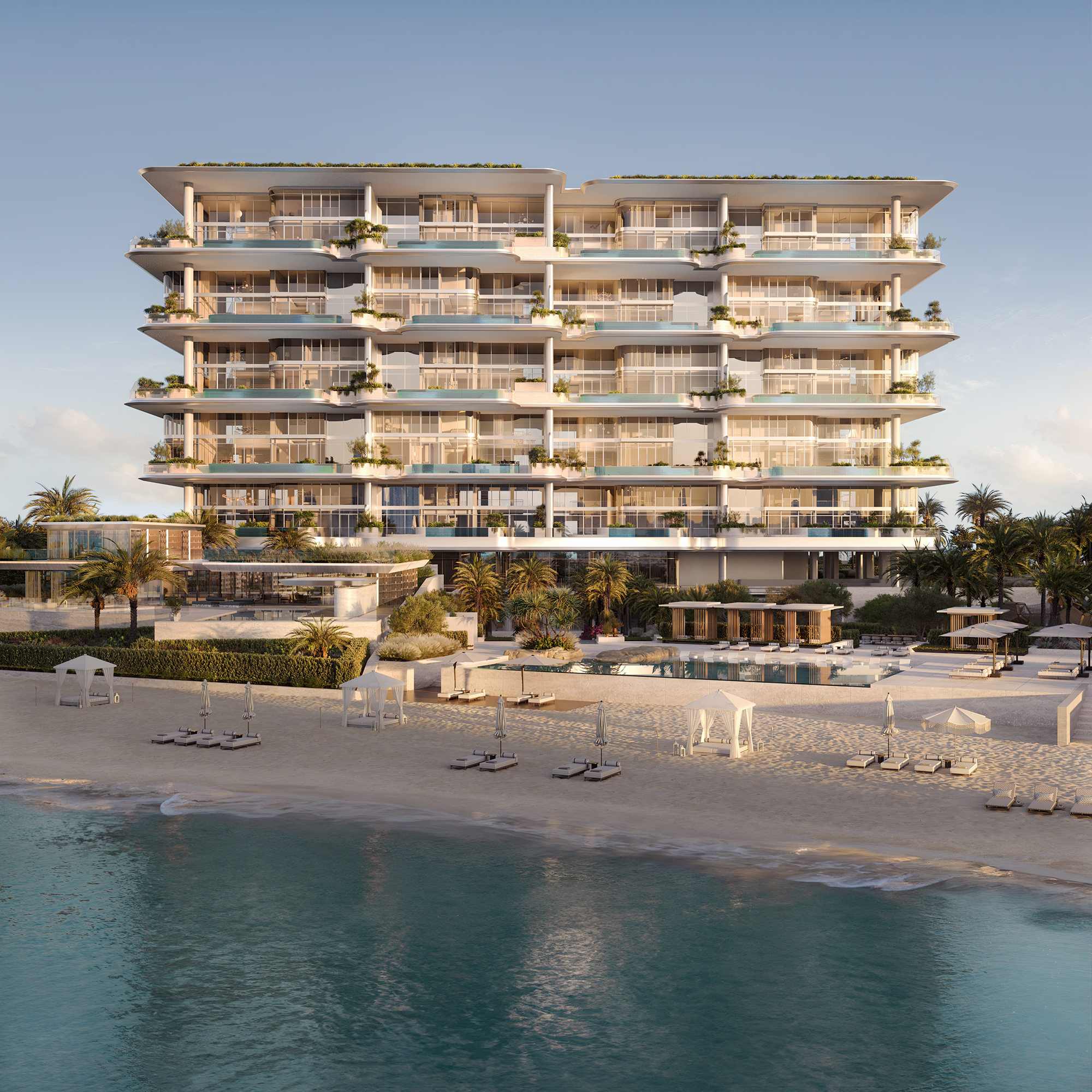 Set at the pinnacle of Dubai’s Palm Jumeirah, ORLA Infinity is home to extraordinary resort-style living. It includes just 20 duplex residences – each one a beachfront paradise with unparalleled privacy. Gaze out over the glittering Arabian Gulf, explore the beautiful grounds, or simply enjoy the sense of serenity that embraces you here.
